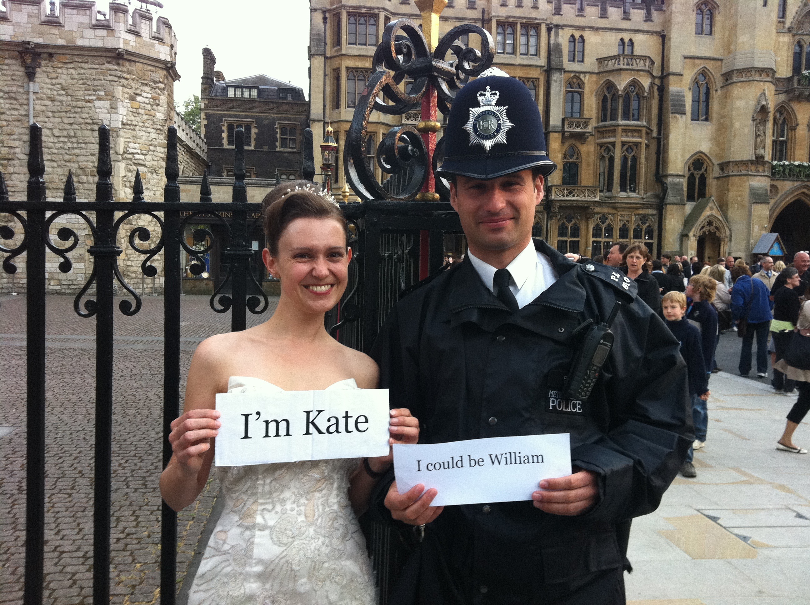The idea was to take one photo outside Westminster Abbey in my dress, and see if I could find a William or two.