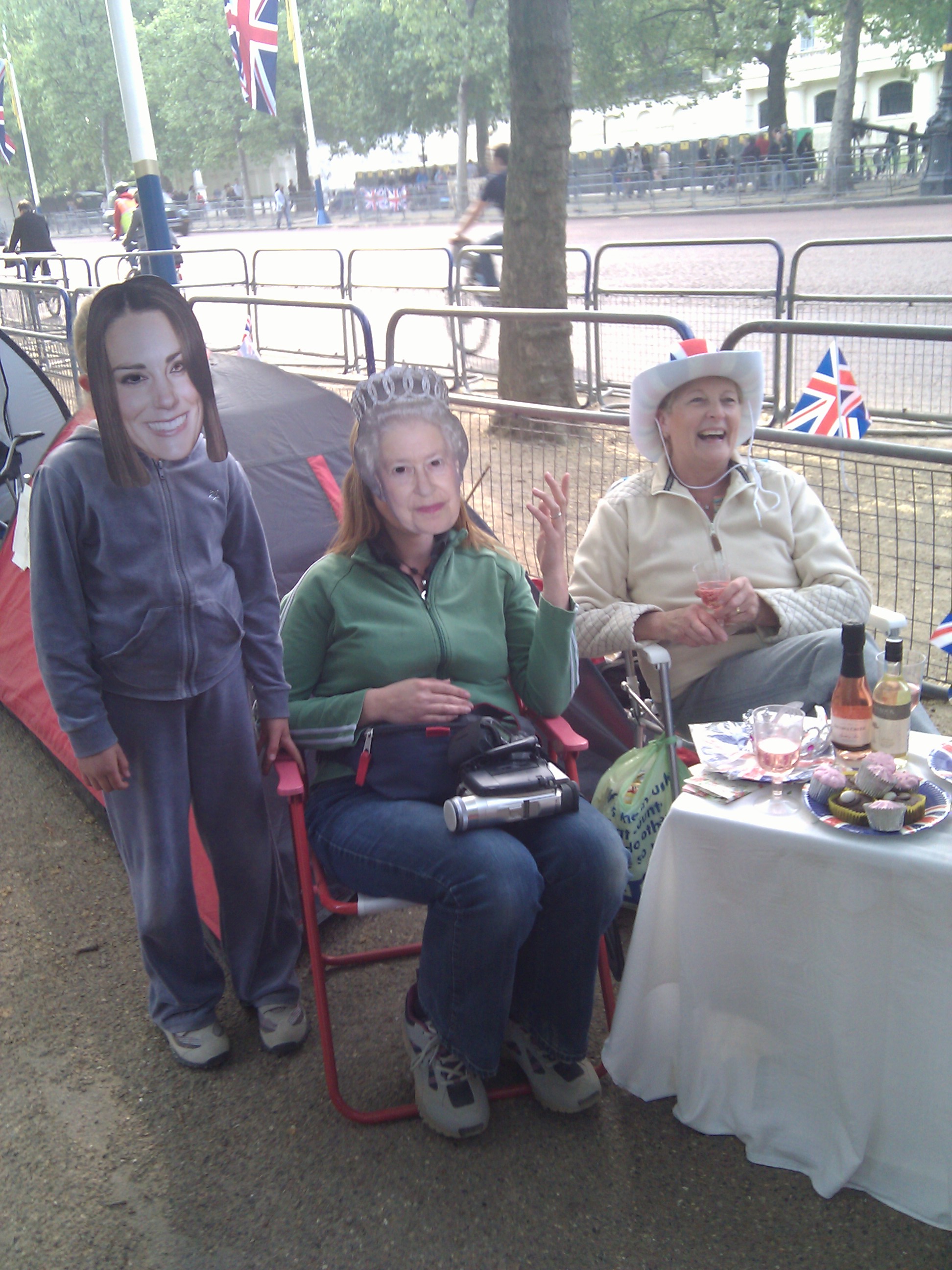 People were camped along the side of the road, cup cakes and wine on make-shift tables. Three generations of one family, proudly sporting royal masks and re-telling their story to a host of passers-by, photographers and journalists.