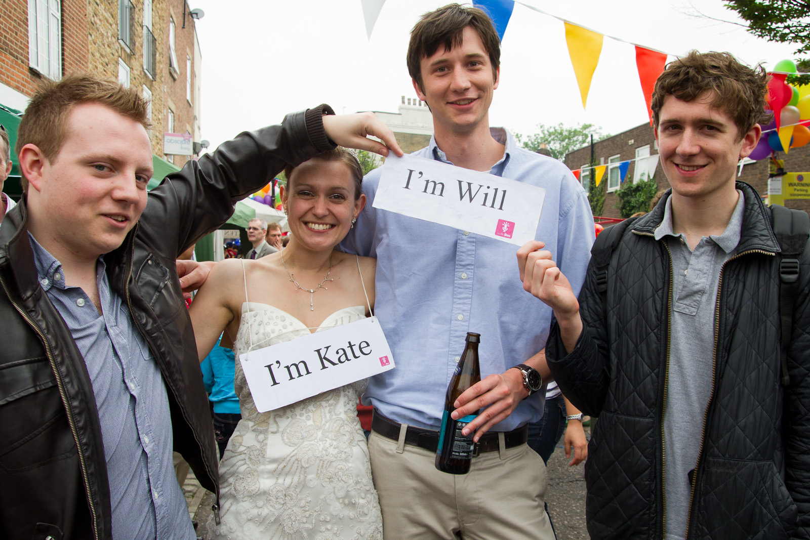 Back at the pub, I did another superman-esque cubicle change and then bumped into a young boy with Union flags on his face. “I’m sorry”, said his mother, “I think that he thought you were Kate”. I laughed and said if only he’d seen me moments before I would have looked like a much more convincing princess, but that I really am called Kate. Upon hearing this, they young boy, no more than five-years old, announced that he was “Prince Charming William King”, put his hands on my arms, and asked me to marry him. It was incredibly adorable, and had I not been dashing down to the loo to get changed I would have been able to share some audio or photos with you. I think though, this will remain our special moment.